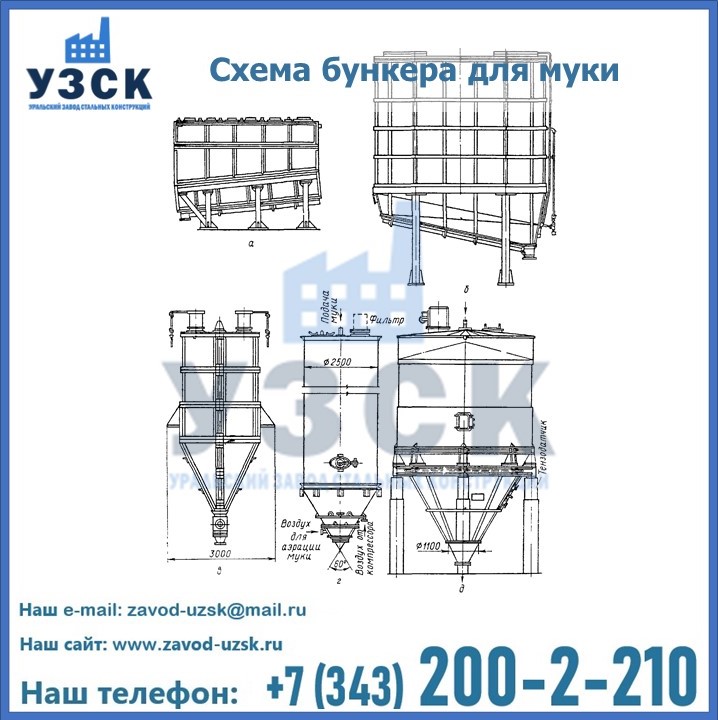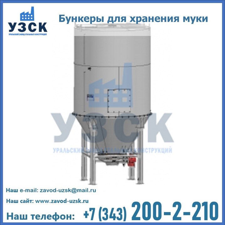 Завод «УЗСК» в Череповце проектирует, производит и поставляет целевое оборудование, в том числе, бункеры для хранения муки и прочих сыпучих материалов.