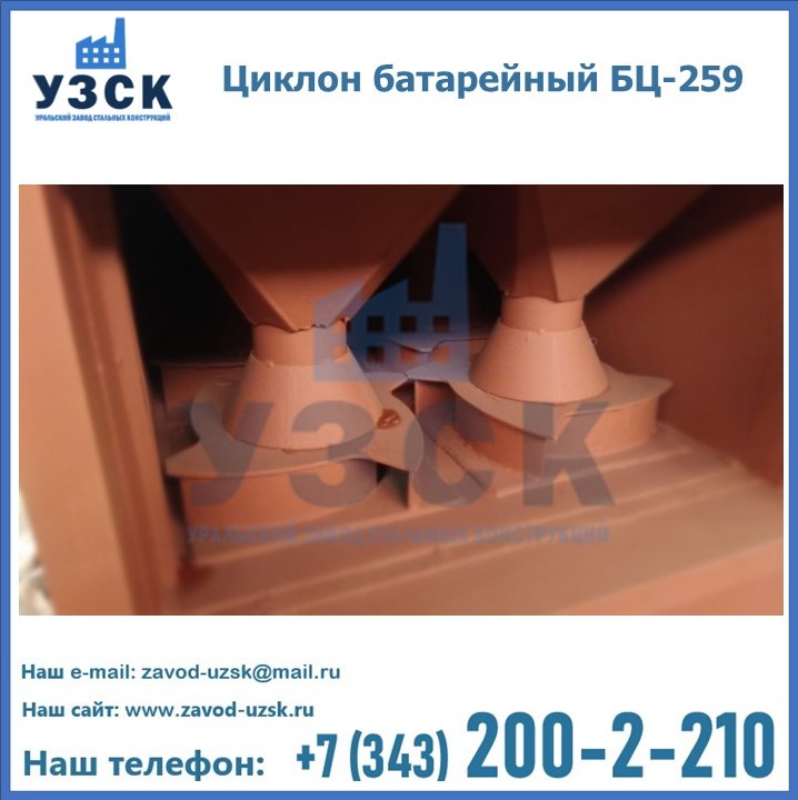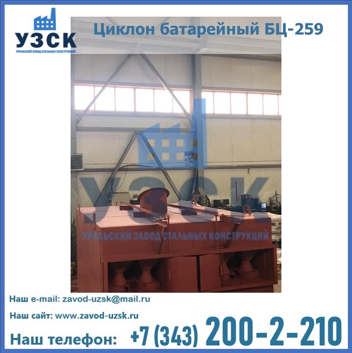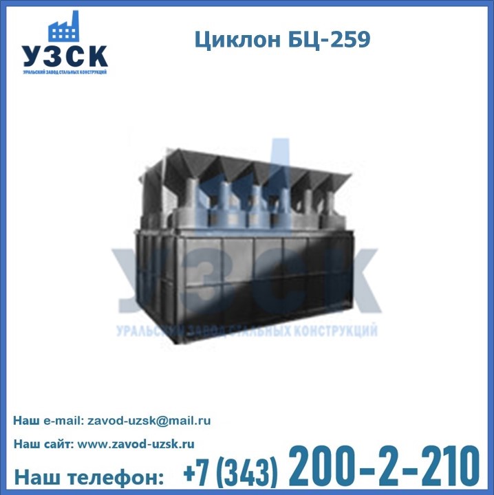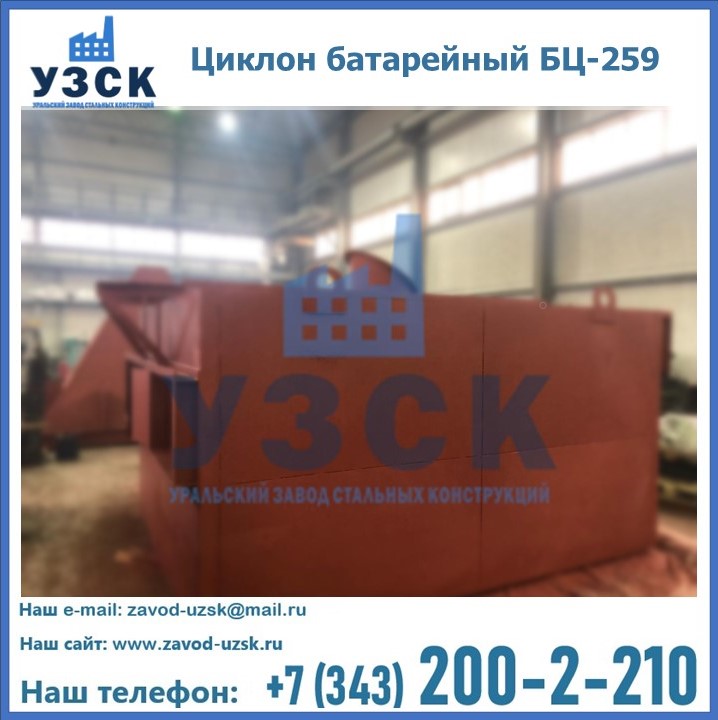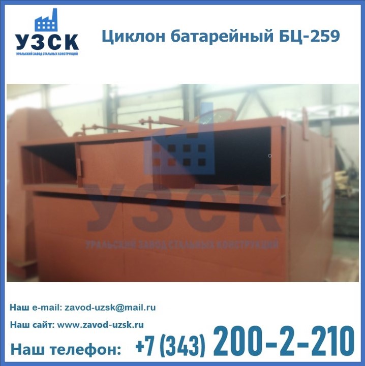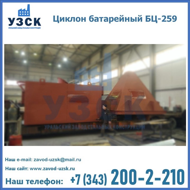 Приобрести качественное оборудование, в том числе, циклоны БЦ-259, можно в компании УЗСК в Череповце. Мы предлагаем долговечную и надежную продукцию по приемлемой цене. Заказать и купить циклоны или другие изделия высокого качества можно через сайт Уральского Завода Стальных Конструкций, или позвонив по указанному в разделе «Контакты» телефону.