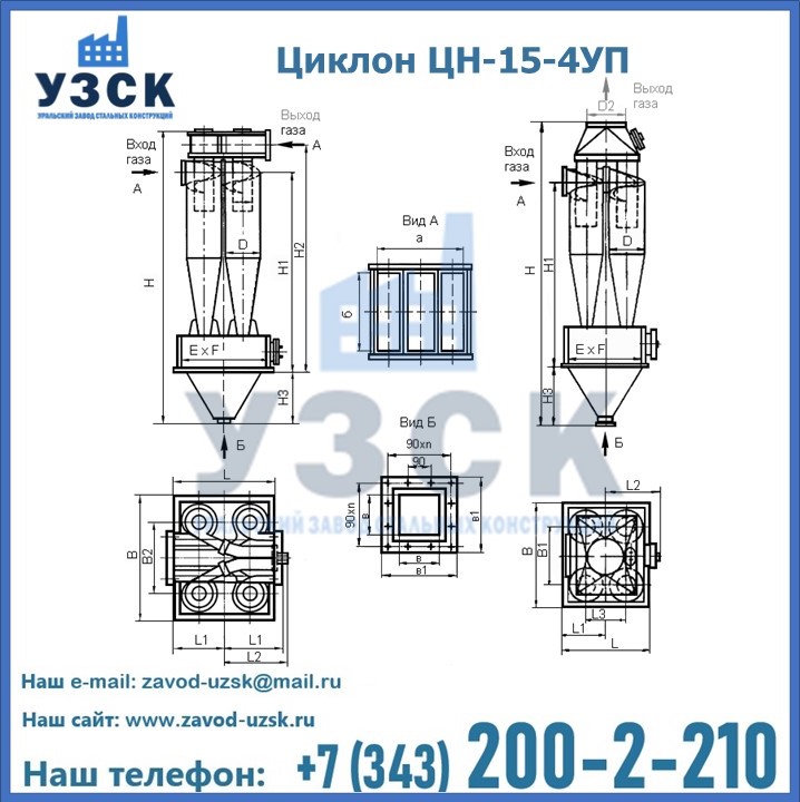 Завод «УЗСК» в Череповце предлагает большой выбор циклонов ЦН-15-900×4УП и прочих устройств, полностью укомплектованных и готовых к эксплуатации. Мы гарантируем соответствие оборудования всем требованиям ГОСТ и ТУ, износостойкость и высокую производительность предлагаемого оборудования. Уральский Завод Стальных Конструкций изготавливает и продает надежное, эффективное и производительное оборудование, имеющее длительную гарантию и большой эксплуатационный ресурс. Если требуется изготовить циклон нестандартных размеров, то такой вариант выполнения заказа тоже предусмотрен, так как предприятие имеет собственные производственные площади и надежных поставщиков. На все поставляемое или производимое оборудование имеются чертежи и прочая техническая документация. Заказать и купить циклоны или прочее оборудование высокого качества и по доступной цене можно через наш сайт или по указанному в разделе «Контакты» телефону.