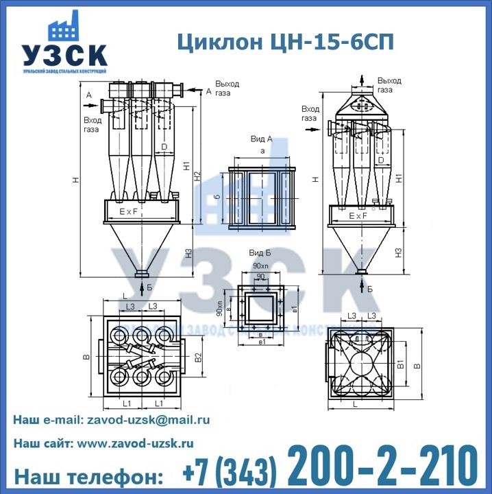 Завод «УЗСК» в Череповце предлагает большой выбор циклонов ЦН-15-900×6СП и прочих устройств, полностью укомплектованных и готовых к эксплуатации. Мы гарантируем соответствие оборудования всем требованиям ГОСТ и ТУ, износостойкость и высокую производительность предлагаемого оборудования. Уральский Завод Стальных Конструкций изготавливает и продает надежное, эффективное и производительное оборудование, имеющее длительную гарантию и большой эксплуатационный ресурс. Если требуется изготовить циклон нестандартных размеров, то такой вариант выполнения заказа тоже предусмотрен, так как предприятие имеет собственные производственные площади и надежных поставщиков. На все поставляемое или производимое оборудование имеются чертежи и прочая техническая документация. Заказать и купить циклоны или прочее оборудование высокого качества и по доступной цене можно через наш сайт или по указанному в разделе «Контакты» телефону.