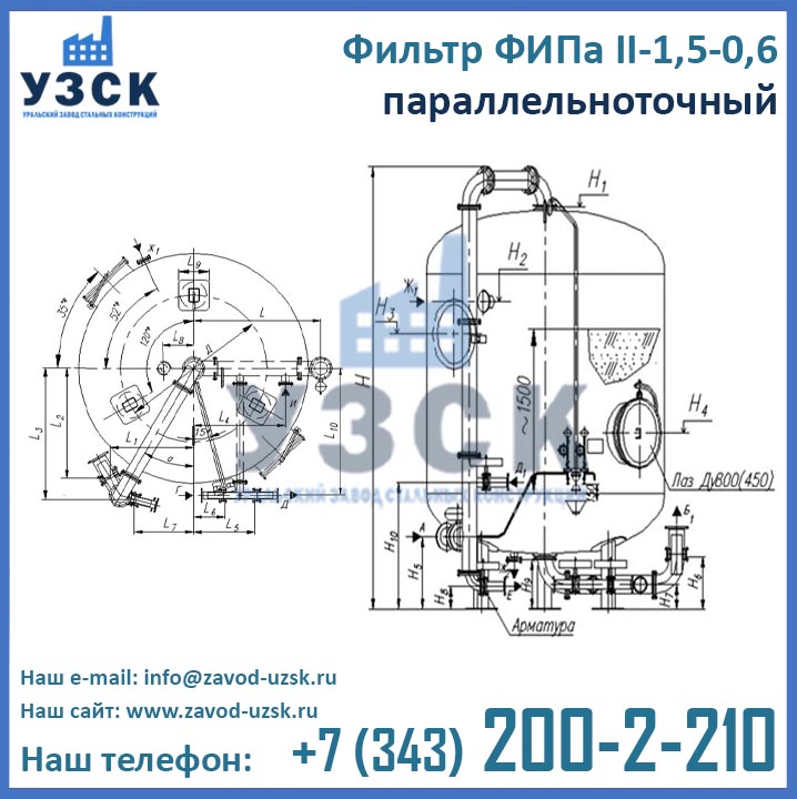 Цены фильтра ФИПа 2 ступени 1,5-0,6 формируются в соответствии со множеством факторов, таких как материальное исполнение, тип распределительных устройств, требуемая комплектация, необходимости доставки и т.д. Для расчета цены фильтров ФИПаII-1,5-0,6 в Череповце обратитесь в отдел продаж Уральского Завода Стальных Конструкций по координатам, указанным в разделе «Контакты».