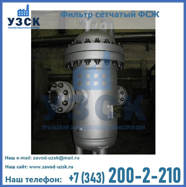 Очистку перекачиваемых жидкостей на предприятиях нефтяной, пищевой, горнорудной, фармацевтической и других отраслей промышленности эффективно выполнять с помощью жидкостного сетчатого фильтра — емкостное оборудование цилиндрической формы со съемной крышкой и элементом фильтрации внутри. Оснащенные им всасывающие линии насосных станций и установок защищены от проникновения твердых частиц в функциональные узлы гидравлической системы. Оборудование служит для перекачивания токсичных, агрессивных и иных эмульсий, суспензий, жидкостей. Купить фильтр сетчатый жидкостный ФСЖ в Череповце с гарантией производителя предлагает «Уральский завод стальных конструкций». Мы выполняем проектирование и изготовление ФСЖ по индивидуальным требованиям (климатическая зона, транспортируемая жидкость).
