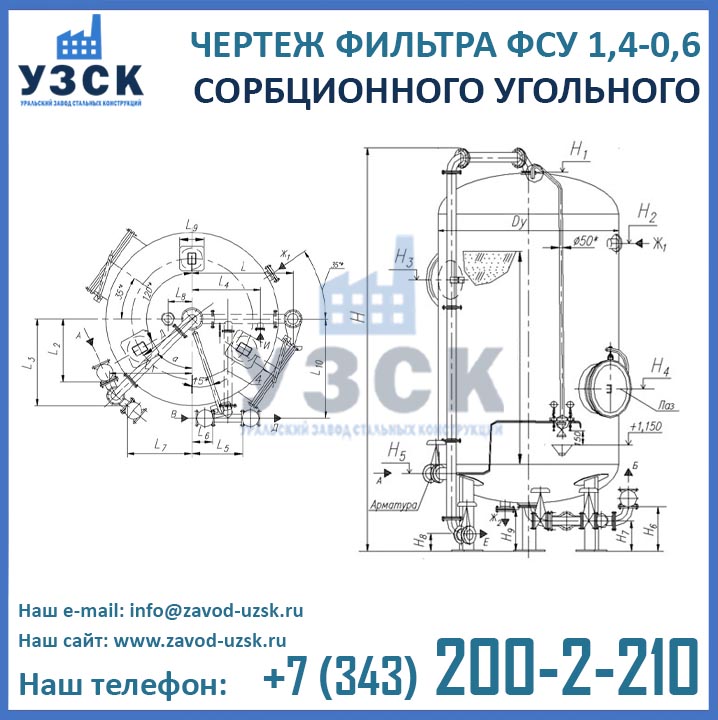 Если вы ищете фильтры ФСУ-1,4-0,6 в Череповце от изготовителя, то Вы на правильном пути! Уральский завод стальных конструкций – непосредственный производитель сорбционных фильтров ФСУ, предлагающий самые выгодные цены на ФСУ-1.4-0.6 в Череповце. По окончании процесса производства угольные фильтры проходят гидравлические испытания пробным давлением 0,9 МПа на аттестованном гидростенде, находящимся в собственности завода УЗСК. Мы гарантируем высокое качество выпускаемой продукции, и в этом уже убедились ведущие предприятия промышленного сектора России и стран ЕАЭС (см. раздел «Наши клиенты»).