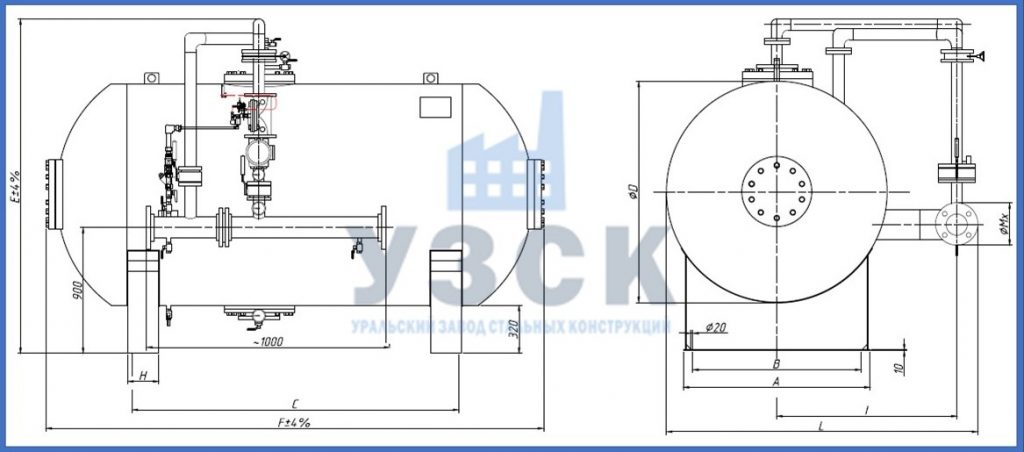 - Одинарный горизонтальный, объемом 1 000-12 000 л или вертикальный, емкостью 200-12 000 л.