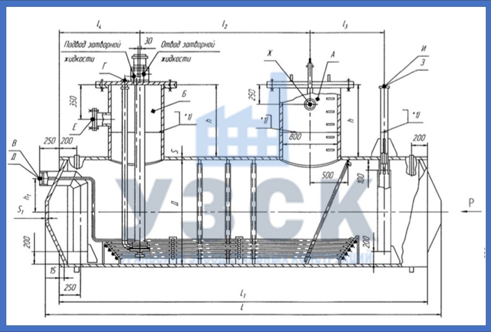 Загрузочный люк может иметь обвязку в виде фильтра, манометра, указателя уровня и температуры в отстойнике.